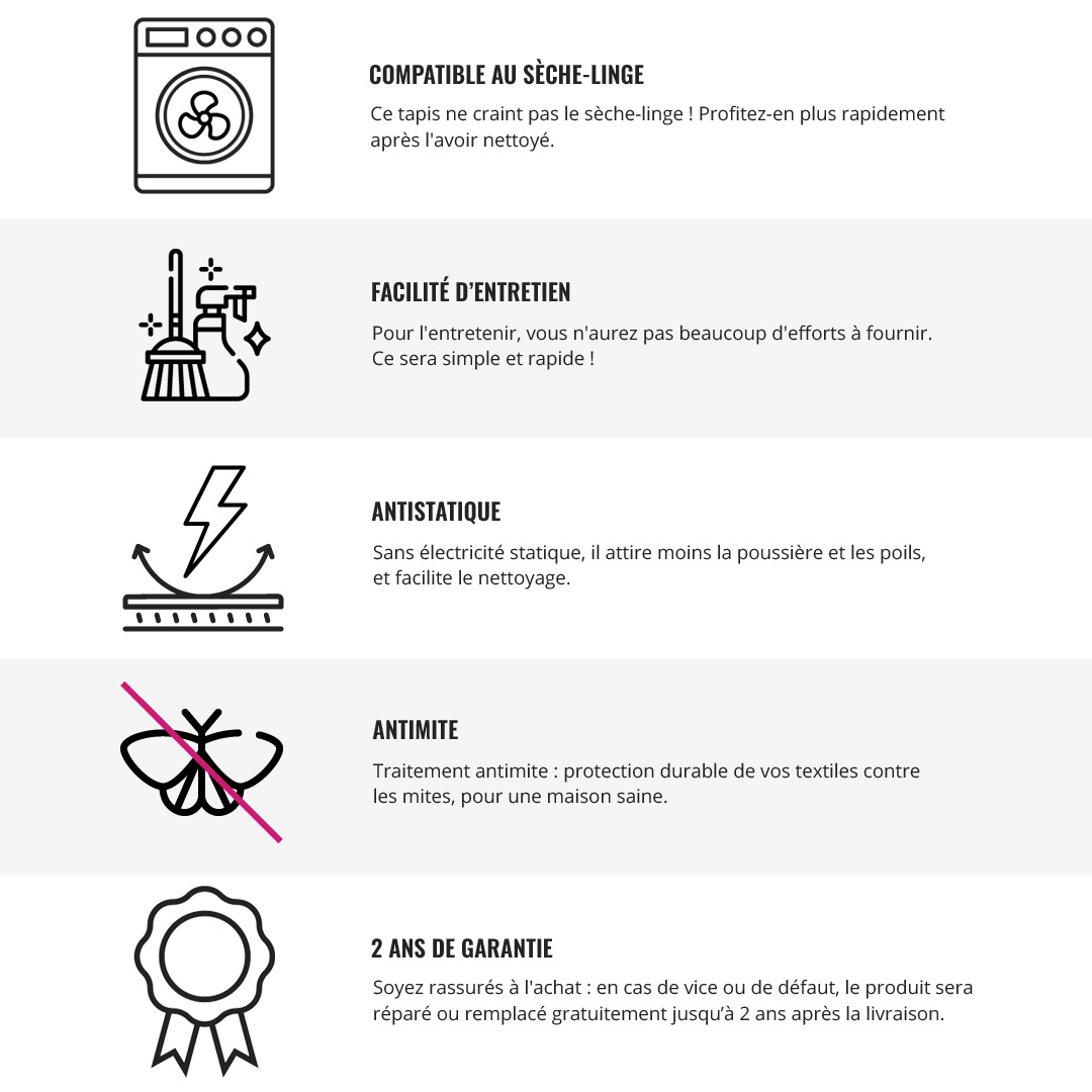 Ce tapis ne craint pas le sèche-linge ! Profitez-en plus rapidement après l'avoir nettoyé.