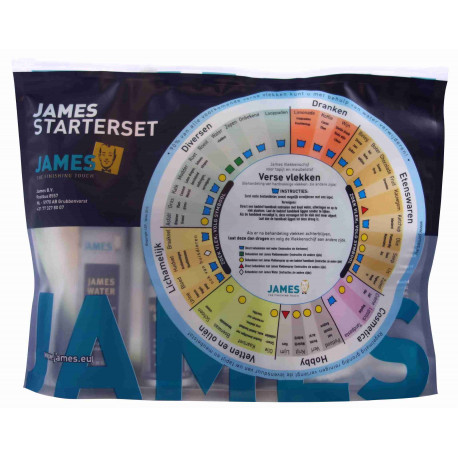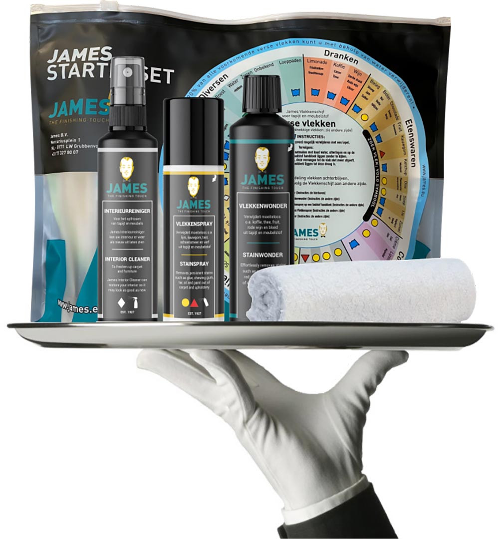| Composition précise : | James Water (100 ml), James Stainwonder (100 ml), James Stainspray (50 ml), le disque James et un chiffon 100% coton, pré-lavé |