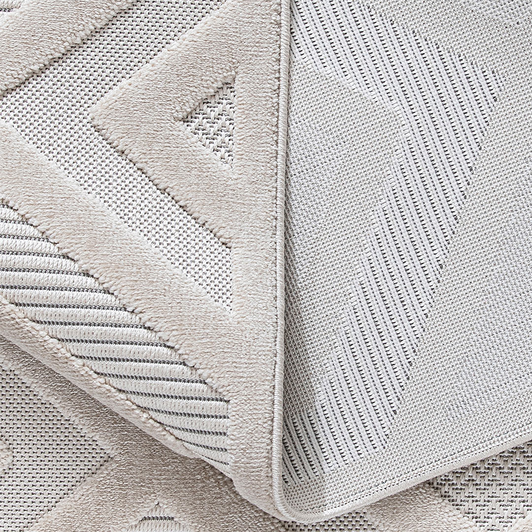 Le tapis avec franges géométriques design Soan est un véritable coup de cœur pour ceux qui ont fait l'expérience de l'installer une fois. Il aborde un coloris beige et des motifs géométriques qui s'harmonisent à merveille pour apporter de la douceur et du style à votre décoration. Les motifs en forme de losange créent un formidable effet graphique donnant à la pièce une note dynamique. À ceci s'ajoute l'effet des franges qui ornent magnifiquement les bords en renforçant le charme du tapis. Le tapis est de fabrication mécanique et originaire de la Turquie. Il présente des coutures régulières et soignées.