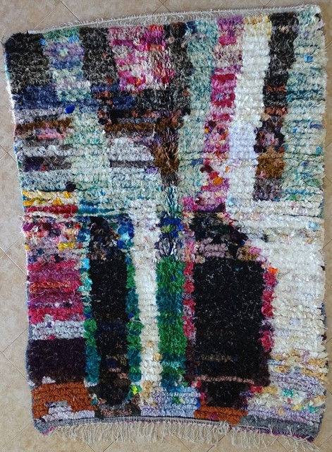 Le tapis berbère Boucharouite multicolore 195x150 noué main Rosemary est une véritable œuvre d'art fabriqué et artisanalement au Maroc. Fabriqué à partir de coton et de tissus recyclés, ce tapis berbère se démarque par son originalité et son caractère unique. Chaque pièce est unique et reflète la richesse de la culture berbère et des traditions artisanales. Avec une hauteur de poils de 20 mm et un grammage de 3 000 g/m2, ce tapis présente une texture agréable et un confort exceptionnel sous les pieds.