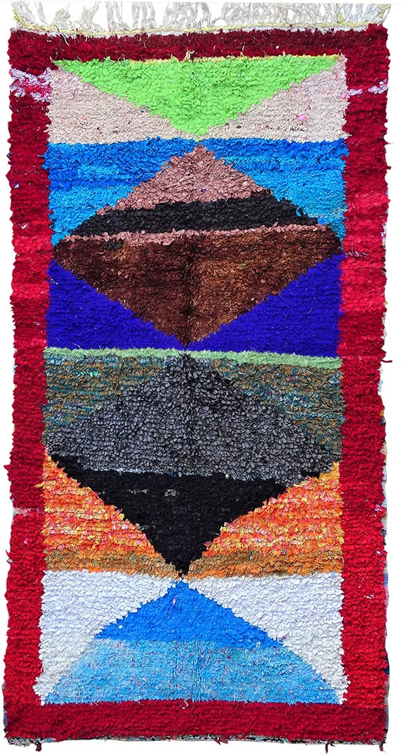 Avec un poids de 3.000 g/m² et une fabrication nouée main, ce tapis coloré est robuste et durable. Le dossier en coton et tissu recyclé assure une bonne tenue et une longue durée de vie. Que ce soit dans un salon, une chambre ou un bureau, ce tapis apportera une touche de couleur et d'originalité qui transformera votre espace. En choisissant ce tapis berbère boucharouite multicolore, vous optez pour une pièce unique alliant tradition, durabilité et esthétisme.