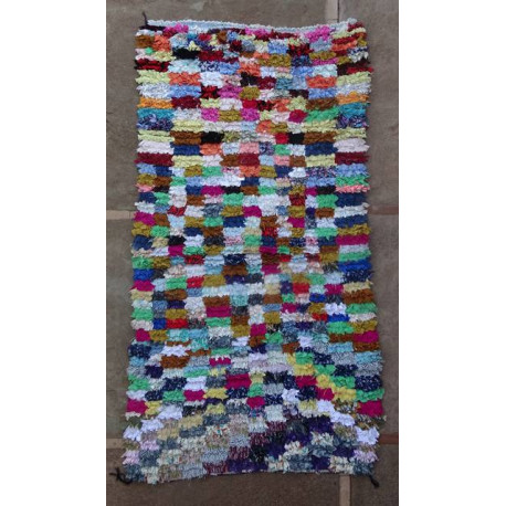 Vous pouvez commander ce tapis sur mesure pour l'adapter parfaitement à votre espace. Que ce soit pour un salon, un bureau ou une chambre, le tapis boucharouite 200x110 vintage noué main multicolore Sakina apportera une touche de couleur et de tradition à votre intérieur. Son dossier en coton et tissu recyclé assure une base solide et durable, respectueuse de l'environnement. Ajoutez une pièce d'exception à votre décoration avec ce tapis, symbole de l'artisanat marocain et de la durabilité écologique.