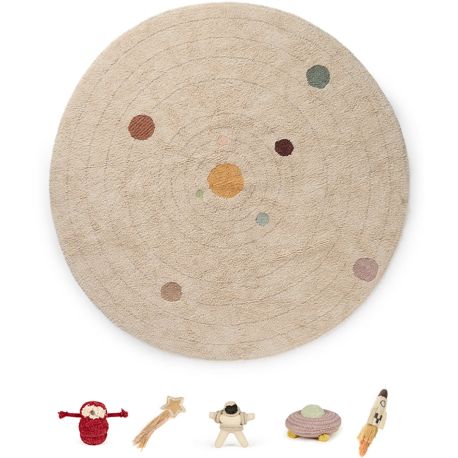 Ses couleurs douces et son motif inspiré du système solaire font de ce tapis un véritable caméléon, s’adaptant à toutes les décorations. Que ce soit pour jouer, lire ou rêver, il s’impose comme un élément central et amusant. En plus de son style, il est super facile à entretenir : un petit coup d’aspirateur de temps en temps et un chiffon humide pour les petites tâches, et voilà ! Et pour couronner le tout, il est garanti 2 ans, une vraie tranquillité d'esprit pour les parents.