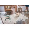 Cette création originale est proposée en trois dimensions : 90x130, 120x160 et 140x200. Les utilisations de ce tapis sont nombreuses, il peut par exemple délimiter une zone de jeu au sol ou agrémenter un mur à la façon d'une petite tenture et ainsi transformer l'ambiance de la pièce. Sa couleur naturelle coton écru se fond dans toutes les décos et s'adapte à tous les styles de meubles.