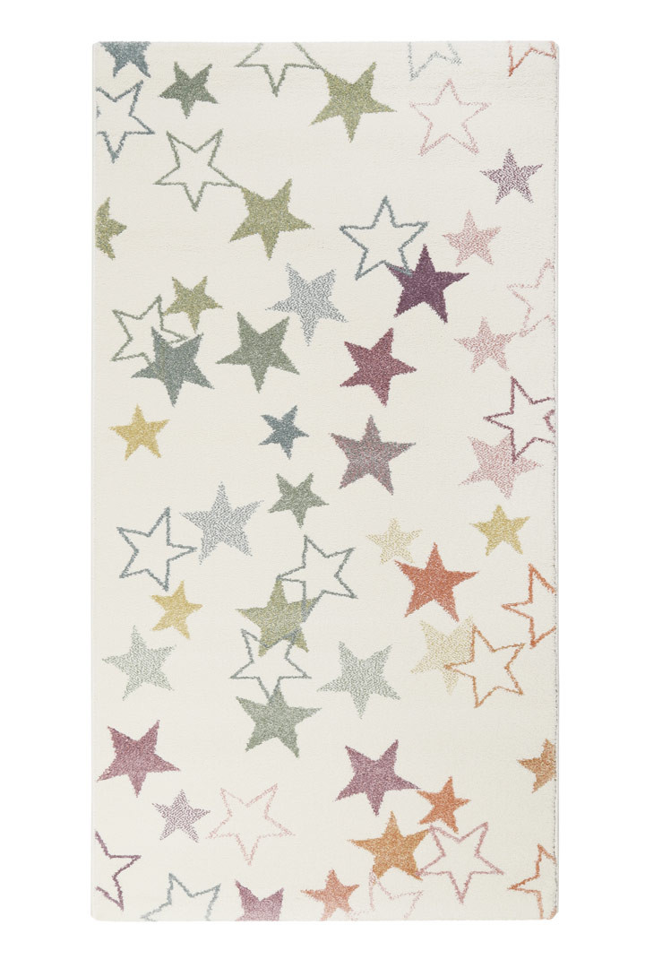 Le tapis est un accessoire de décoration indispensable pour habiller une chambre. Il apportera vie et chaleur à celle de votre enfant. Sur fond écru constellé d'étoiles aux couleurs douces, le tapis blanc s'adapte facilement à la décoration de sa chambre tout en lui apportant une touche cosy et très tendance. Il se mariera parfaitement avec des meubles aux couleurs claires ainsi qu'avec des matières douces et chaleureuses, telles que peluches et autres coussins. En velours fin, il est notamment agréable quand on se promène pieds nus.