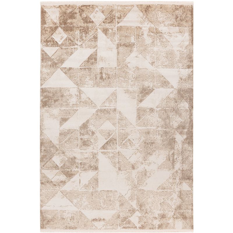 Accessoire d'origine turque, ce tapis porte un design très distinctif avec une multitude de graphiques en forme géométrique. Son motif est composé de triangles, de trapèzes et de losanges disposés pêle-mêle sur toute la surface. Cette association de figures, combinée à sa couleur beige, donnent au tapis un aspect plus chaleureux, convivial et accueillant.