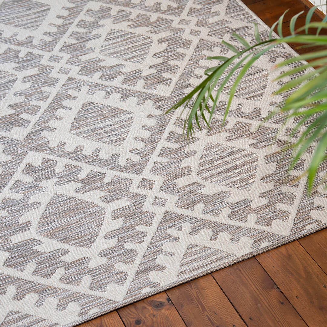 Ce qui rend ce tapis d'extérieur spécial, c'est son effet 3D, qui crée une profondeur visuelle et une texture unique. Il s'intègre parfaitement dans n'importe quel environnement , y ajoutant une touche d'élégance et de modernité. Que vous souhaitiez embellir votre salon, votre terrasse ou votre jardin, ce tapis d'extérieur est une solution polyvalente et élégante. Ses motifs ethniques et sa palette de couleurs blanc pur se marient sans effort avec différents styles de décoration, apportant une ambiance chic et sophistiquée à votre espace de vie.