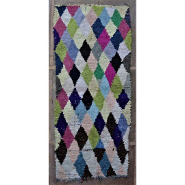 Dans un tapis berbère Boucherouite, les motifs mettent en exergue l’art abstrait. De plus, il possède des couleurs chatoyantes. Il est adapté pour les habitations exploitant le style vintage. Il garantit l’unicité des modèles. Vous ne trouverez pas deux tapis de même coloris et motifs.