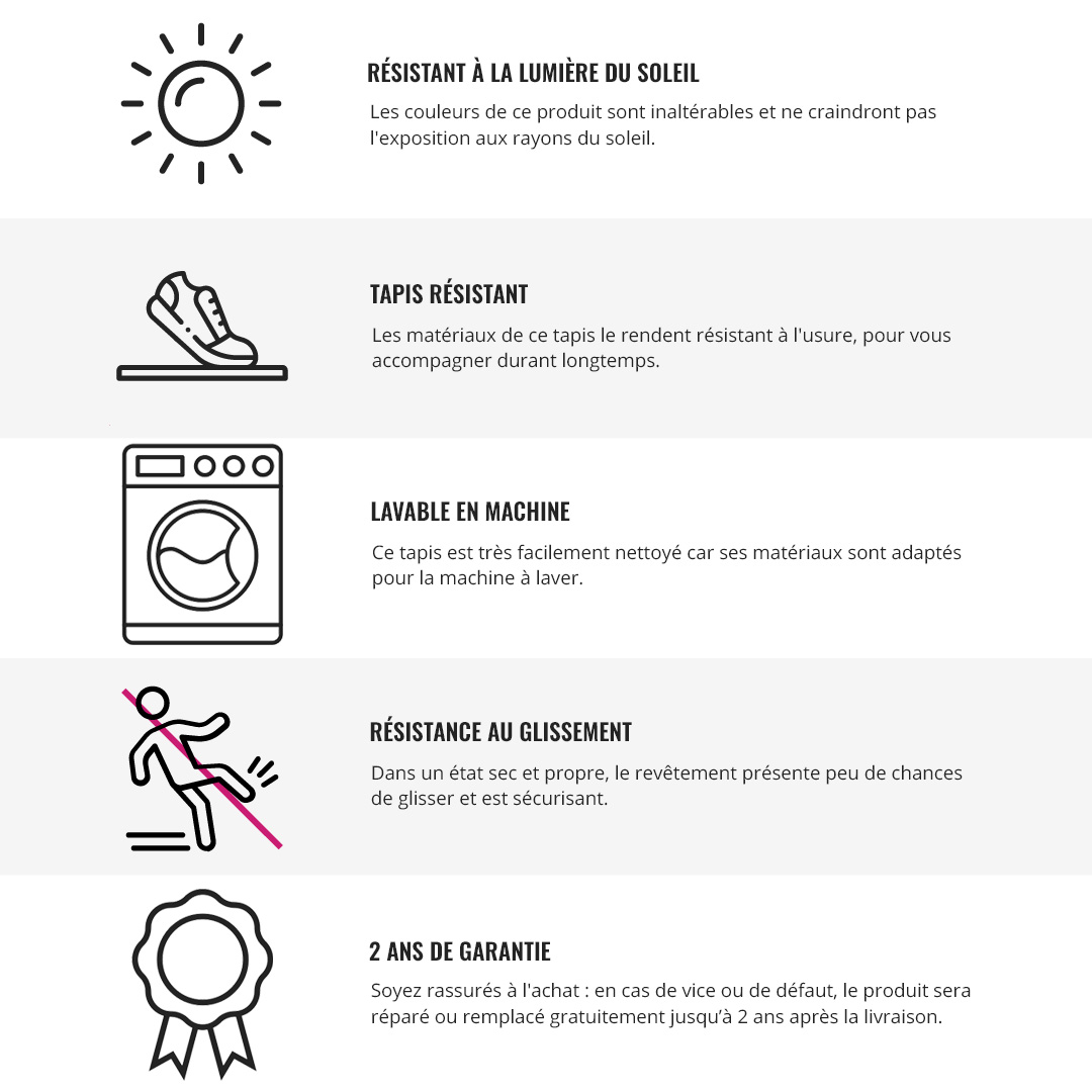 Les matériaux de ce tapis le rendent résistant à l'usure, pour vous accompagner durant longtemps.