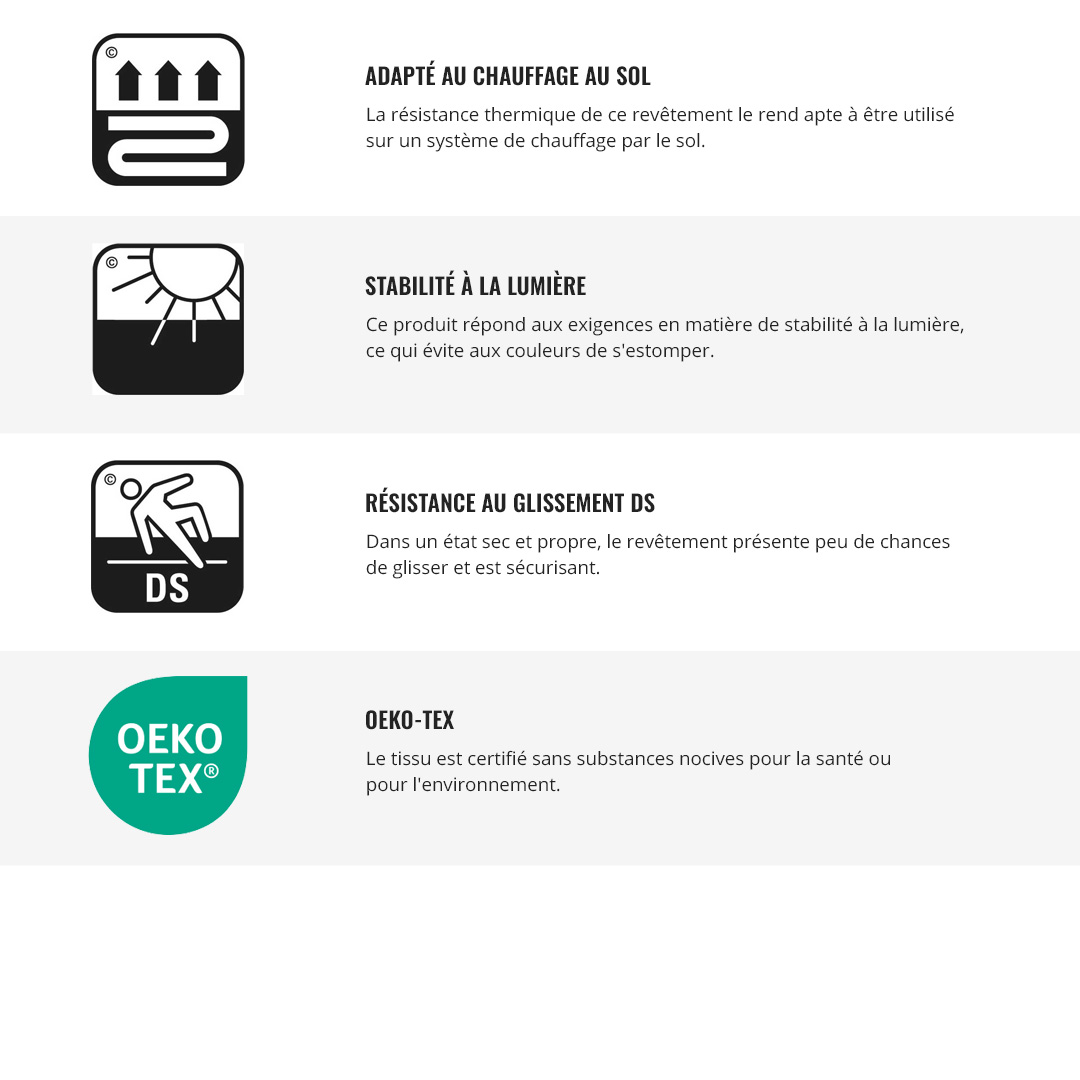 Tous les revêtements n‘ont pas la même résistance à la température. Celui-ci est adapté au chauffage au sol.