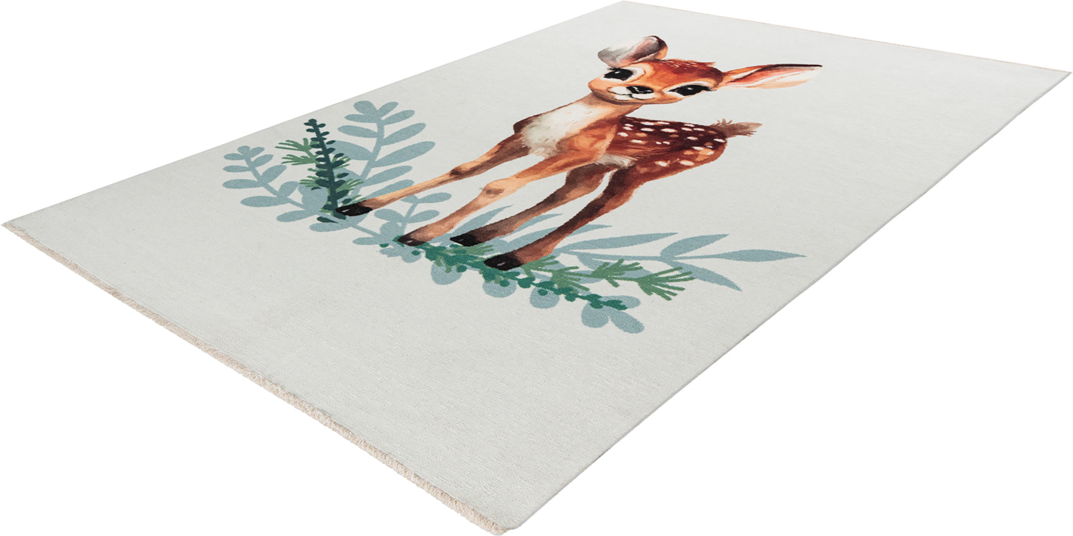 Le tapis plat enfant lavable en machine multicolore lupo est un revêtement de sol, particulièrement conçu pour la chambre des petits enfants. C’est un joyau très apprécié pour sa couleur blanche marquée par le dessin d’une petite biche posé sur des branches vertes. C’est un motif assez élégant et discret qui permet de réellement mettre en valeur la chambre de vos petits.